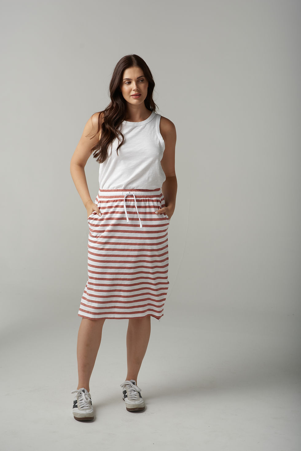 Stripe Draw String Skirt - White/Terracotta