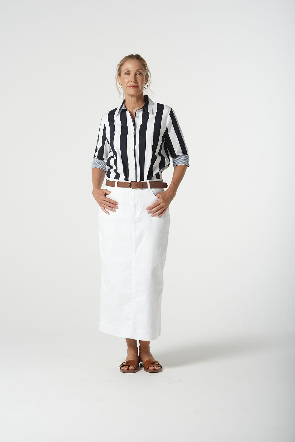 3/4 Sleeve Thick Stripe Shirt - Navy